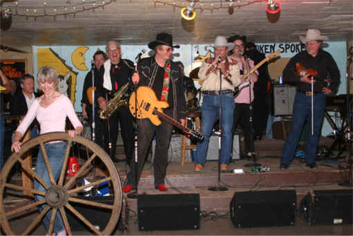 The Broken Spoke L-R - Scott, Judy, Paul, Del, Cornell, James White, Blackie, Randy, Howard